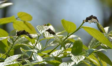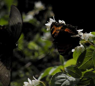 ウツギで吸蜜する成虫がカラスアゲハに威嚇される?
