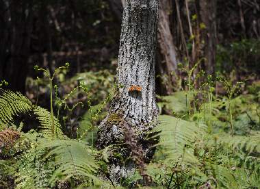 2011年4月10日 静岡市駿河区大谷 遅かった春がやってきました。雑木林にはいると大きな蝶が飛びコナラの樹幹に止まりました。予想どおりヒオドシチョウです。冬の間はどこで過ごしたのでしょうか。シダの新芽が春を感じさせます。 トップページへ |