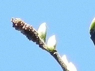 2016年4月16日 静岡市駿河区大谷 2013年に産卵と幼虫を観察したエノキの頂部に2ヶ所、葉が少ないところを肉眼で見つけ、望遠レンズで見ると幼虫群と卵塊が見つかりました。他の方のHPを見ると、結構低いところで産卵することもあるようですが、この地ではいつも地上から4、5mの頂部でしか産んでくれず詳しく観察できません。 トップページへ |