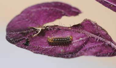 (参考) 脱皮後成長したイワサキタテハモドキの幼虫(2齢、4.8mm、シソモドキ) 2017年7月28日 撮影 静岡市駿河区 飼育 沖縄県石垣島産母蝶採卵 個体2:脱皮1日後なのですが、もう眠に入ってしまいました。気温は32℃を超えているので、熱帯性のこの蝶にとってはちょうどいいのかもしれません。 トップページへ |