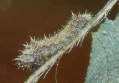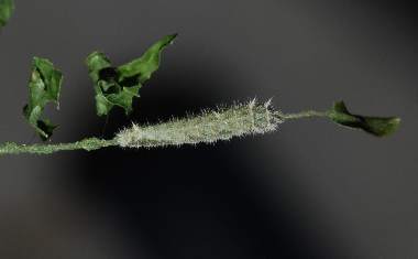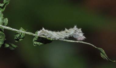 幼虫(4齢?、フジ) 2006年6月24日 大阪府高槻市三好山 一日中日陰になる林道脇に生えていた小さなフジの葉がしおれていたのが目について、探したところすぐに幼虫が見つかりました。 トップページへ |