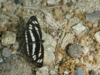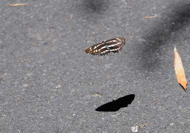 コミスジの占有行動 2002年6月2日 大阪府高槻市三好山 大阪周辺域の山地に行くと普通に見られますが、このように、少し高いところに翅を広げ、周りを見張っていることが多いです。模様はシックでなかなか清楚な感じがします。 トップページへ |