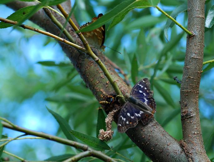 クロコムラサキと通常型コムラサキの吸汁(両方♂、ヤナギ類)