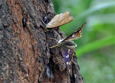 ![]() ↑写真では分かりませんがクロコムラサキが2匹います。 ![]() ↑中央の個体がクロ。ストロボ撮影。 ![]() ↑ストロボ撮影。 |