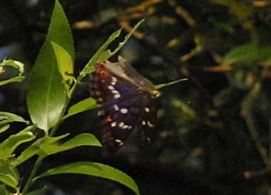 2011年9月10日 静岡市葵区 今年初めて観察しに来ました。夕方4時前になってテリトリーを見張る♂が6匹程度見られ、そのうち2匹がクロコムラサキだったようです。♀も3匹見られ、2匹がクロコムラサキでした。 トップページへ |