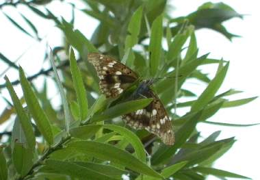 2015年7月25日 静岡市葵区 コムラサキの集団吸汁のヤナギを何本か見つけました。集団を合わせると全部で30匹はいたでしょうか。しかしクロコムラサキの率は低く、5匹しか見られませんでした。 トップページへ |