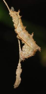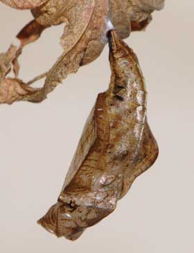 ![]() (参考) ミスジチョウの蛹(20mm) 2010年5月3日 撮影 三重県松阪市飯高町 母蝶採集→人工採卵 2009年6月7日 I氏採集・採卵・飼育 兵庫県西宮市飼育(I氏) 三重県で得られた母蝶から人工採卵し、それを飼育して蛹化に至った蛹をご厚意でI氏にいただきました。 トップページへ |