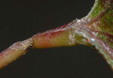 (参考) ミスジチョウの幼虫(1齢、3.3mm、モミジ) 2008年6月15日 大阪府東大阪市(生駒山系) 暗めの環境の小さなモミジで幼虫を見つけました。木は小さいけれども、幼虫は3匹いました。スミナガシやイチモンジチョウに似て、葉を小さく切ってぶら下げ、葉の中脈を露出させてその先の表側に静止しています。 トップページへ |
