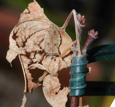 ![]() ↑9月18日07:10am ![]() ↑9月21日07:50am ![]() ↑9月30日11:06am ![]() ↑拡大。頭部をぴたっと葉に付けています。 |