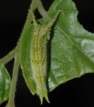 (参考) 越冬後の幼虫(4齢) 2007年4月30日 大阪府豊能郡豊能町 ちょうどエノキの開花時期に2匹の幼虫を見つけました。 トップページへ |