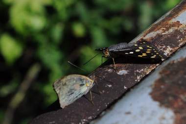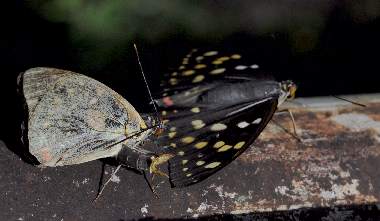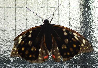 (参考) 求愛行動 2013年7月20日 山梨県北杜市長坂町(オオムラサキ自然観察歩道) 突然目の前に雌雄2匹が舞い降りました。♀は極めて新鮮なようです。♂は交尾器を広げて迫りましたが、交尾には至らず、飛び去ってしまいました。仲良さそうに見えたのですが。 トップページへ |