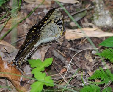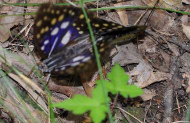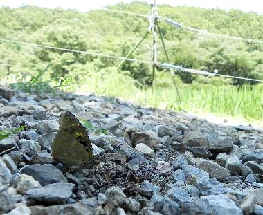 (参考) 吸水または吸汁 2013年7月20日 山梨県北杜市長坂町(オオムラサキ自然観察歩道) オオムラサキ自然観察歩道ではほとんどの場所で、オオムラサキを見ることができました。全く通常の農村という感じのようなところで、時々悠然と飛ぶ姿が見られました。突然ゆっくりと歩道に舞い降りて、吸水をはじめました。糞などがあった跡かもしれません。 トップページへ |
