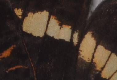 (参考) 羽化後間もないサカハチチョウ(夏型) 2010年9月21、22日 撮影 静岡市駿河区 飼育 宮崎県南那珂郡北郷町 産 9月21日朝起きたときにはまだ羽化していなかったのですが、いつの間にか羽化していました。羽化直後は翅を閉じていますが、しばらくすると羽を開閉します。さらにしばらくすると閉じてしまいます。頭を上にして翅を開いてとまると、明瞭に逆さの八が見えます。この線は白ではなく微妙に色がのっています。 トップページへ |