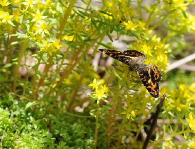 (参考) 吸蜜(春型、マンネングサ類) 2011年5月8日 静岡市葵区中部 この地では、沢の石などにマンネングサ類が多く、黄色になって華やかです。一度だけ、サカハチチョウが吸蜜に訪れました。なかなか絵になる光景です。 トップページへ |