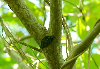 (参考) 幼虫造形物のあるヤマビワと環境 2010年9月12日 宮崎県都城市 照葉樹林帯を流れる川の河原に生えているヤマビワです。この木には、10匹以上のスミナガシ幼虫がいました。 トップページへ |