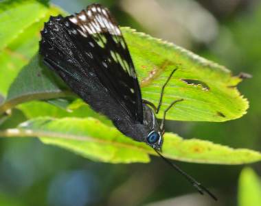 (参考) 羽化間もないスミナガシ 2008年6月30日 兵庫県神戸市 産 大阪市淀川区 飼育 神戸市で6月1日にアワブキ葉裏で見つけた卵を飼育したものです。羽化後1日目です。 トップページへ |