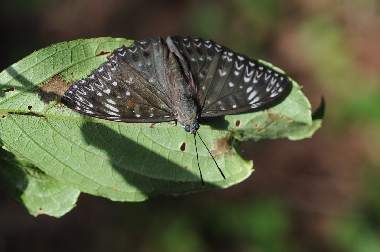 | スミナガシ(墨流し)は字のごとく非常にシックな模様を持つ、日本人好みのすばらしい蝶と思います。残念ながら、市街にはいませんが、大阪市の周りの郊外(能勢、生駒山系、六甲山系など)に行けば少ないながらも生息しています。アオバセセリと共にアワブキという木の葉を食べますが、このアワブキがあまり多くないのが、これらの蝶を少なくしている理由の一つでしょう。私にとっては幼虫は憧れの的でした。そのユニークな形と、葉を綴って巣のようなものを作る習性は図鑑等で知っていてずっと憧れだったのです。しかしアワブキすら見つけることができず、悔しい思いをしてきたのですが、2008年に念願適って郊外にアワブキを10本ほど見つけ、そしてついに卵と1齢幼虫を見つけることができました。ここではその飼育記録を中心に紹介します。 |