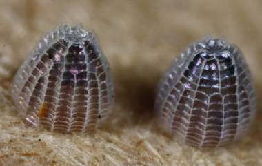 孵化直後のウラギンスジヒョウモンの幼虫(1齢、1.2mm)と卵殻 2012年1月15、17日 静岡市駿河区 飼育 長野県高原 産 個体1:嬉しいことに、諦めかけていた頃、まず1卵孵化し、2日後に3卵孵化しました。最初に孵化したものを個体1とします。卵殻は少し食べているように見えます。結局孵化したのはこの4卵だけでした。全てが紙に産まれたものでした。 トップページへ
