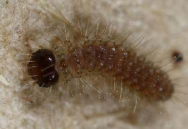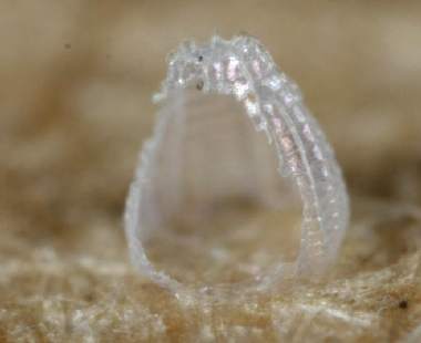 成長した幼虫(1齢、2.3mm) 2012年2月1日 静岡市駿河区 飼育 長野県高原 産 個体1:まだ気温が低いので成長は非常に遅いですが、着実に成長しています。 トップページへ