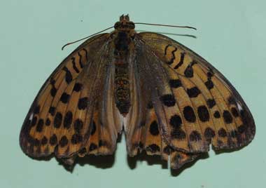 (参考) 羽化後間もないウラギンスジヒョウモン(♂) 2014年12月11日 撮影 静岡市駿河区 飼育 富士山麓の高原 産 個体2。蛹化後ちょうど2週間で羽化しました。だいたい21℃ぐらいで管理していました(温調のパワー不足で外気温(部屋の温度)に連動してしまいます)。もしオオウラギンスジヒョウモンだったらどうしようとちょっと心配していたのですが、間違いなくウラギンスジヒョウモンでした。♂は♀よりも見分けが簡単で、前翅表面の性票が2本(オオウラギンスジは3本)です。 トップページへ |