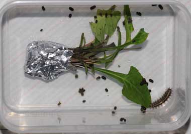 (参考) 脱皮後成長したウラギンスジヒョウモンの幼虫(6齢、36mm、スミレ)と飼育の様子 2014年11月24日 撮影 静岡市駿河区 飼育 富士山麓の高原 産 個体2。個体1は、密閉容器で飼育していました。25℃の加温箱に入れて以降、不調になり死亡しました。そこで、少し隙間のある透明ポリスチレンの容器に他の個体を入れたところ、こちらは順調に生育しているようです。昔から、過湿は飼育の大敵と言われます。それは分かっているのですが、植物の鮮度を保つには過湿状態の方がいいのでこれまで密閉容器を使ってきました。しかしデリケートな飼育にはやめておいた方がいいことにあらためて気づかされました。 トップページへ |