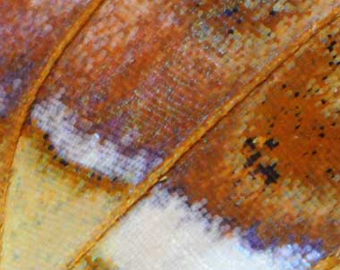 (参考) 羽化後間もないウラギンスジヒョウモン(♀)と鈍く輝く鱗粉 2014年12月19日 撮影 静岡市駿河区 飼育 富士山麓の高原 産 個体4。一週間ほど遅れて♀が羽化しました。ストロボで正面から光を当てて撮ると鱗粉がとてもきれいです。もう1匹も翌12月20日に羽化しました。 トップページへ |