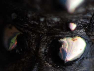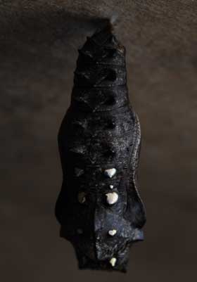 (参考) 蛹(♀)と輝く突起 2014年12月6、14日 撮影 静岡市駿河区 飼育 富士山麓の高原 産 個体3。蛹化後数日とさらに8日後の蛹の写真です。12月6日の写真はストロボで、12月14日の写真は、窓際の自然光で撮ったものです。自然光で撮ったものでは、鏡のように周りの様子が何となく映っています。 トップページへ |
