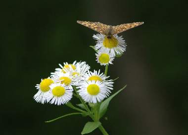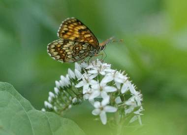 (参考) ウスイロヒョウモンモドキの吸蜜(オカトラノオ、チダケサシ、ヒメジオン) 2005年7月10日 兵庫県ハチ高原 兵庫県北部のスキー場などもある高原です。ここではオミナエシを利用しています。地元の人々を含めた多くの人がこの蝶を守っています。この日は、保護観察会の日で、ネット友M氏のお誘いでウスイロヒョウモンモドキを見に行ってきました。ちょっとスレたのが多かったのですが、個体数は多く、いろんな生態が観察できました。これは吸蜜シーンですが、すべて白い花です。白い花が好きなのでしょう。 トップページへ |