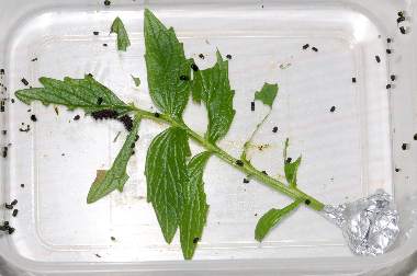 (参考) 幼虫(5齢?、5.8mm、西洋カノコソウ) 2014年5月25日 撮影 兵庫県神河町産累代飼育個体 静岡県駿河区 飼育 個体1:睡眠誘導作用ハーブとして知らる西洋カノコソウ(Valeriana officinalis )を用いて飼育を始めました個体です。齢数ははっきりしませんが、とりあえず5齢として記述していきます。最初、葉裏から薄皮を残して食べていましたが、その後全てを食べるようになりました。 トップページへ |