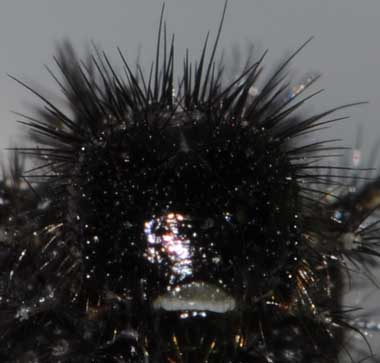 (参考) 脱皮後成長した幼虫(8齢、18.0-22.0mm、西洋カノコソウ) 2014年6月20、24日 撮影 兵庫県神河町産累代飼育個体 静岡県駿河区 飼育 個体1:おそらく終齢と思います。今度も脱皮して成長しても黒い毛虫のままです。よく見ると小さな斑点があります。最後の写真は蛹化場所を探して歩いている状況のようです。蛹化場所はこの位置より2cm上方でした。 トップページへ |